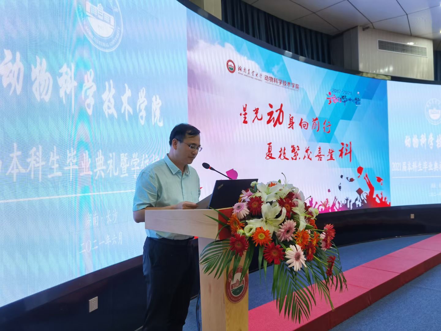 6月10日上午,永利集团3044官网欢迎您2021届毕业生典礼暨学位授予仪式于生命科学楼国际会议厅隆重举行。校党委书记陈弘教授、校党委委员副校长吴波教授出席,佳和农牧股份有限公司企业代表、学院领导班子、学术委员会成员、毕业班班主任等及2021届全体毕业生参加,仪式由学院党委副书记肖露主持。