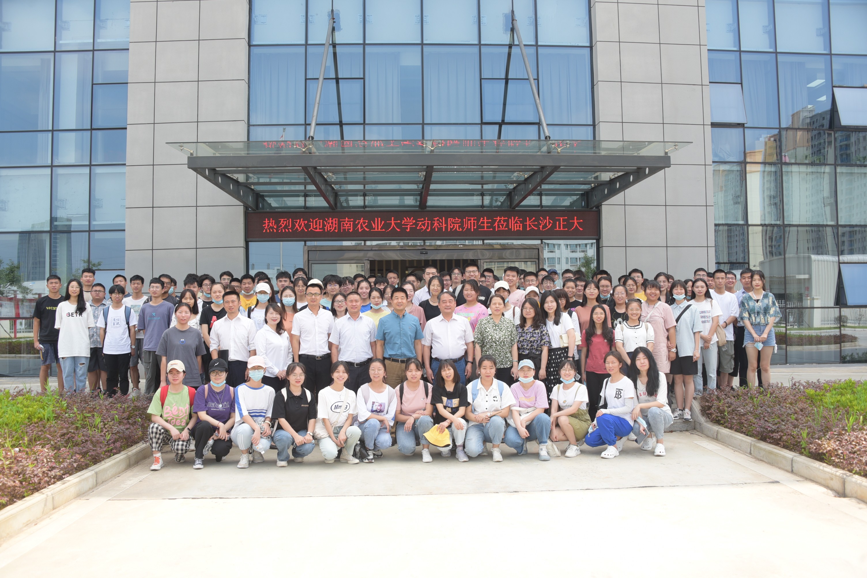 为让同学们了解饲料及饲料添加剂产品类型及配制技术、生产加工工艺流程、原料选择、产品质量控制等相关生产内容,在学院的安排以及在黄兴国教授、高凤仙教授、李颖慧副教授、汪蕊露老师的组织下,6月25日早晨,动科院2018级动科专业全体学生于修业广场五头牛处集合,一同乘车前往长沙正大有限公司和湖南普菲克生物科技有限公司进行参观学习。