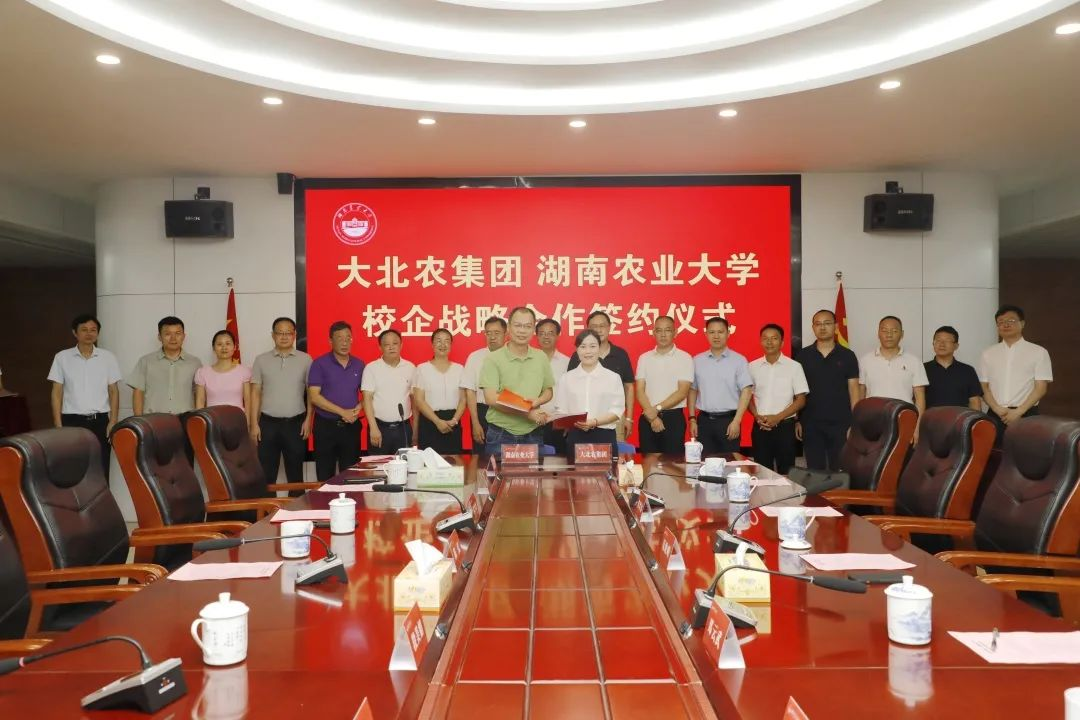 9月27日下午,大北农集团与学校战略合作签约仪式在文渊馆隆重举行。签约仪式由党委副书记段美娟主持党委书记陈弘,校长邹学校,副校长唐圣松以及学校相关单位负责人、大北农集团常务副总裁易敢峰及集团相关部门负责人参加签约仪式。