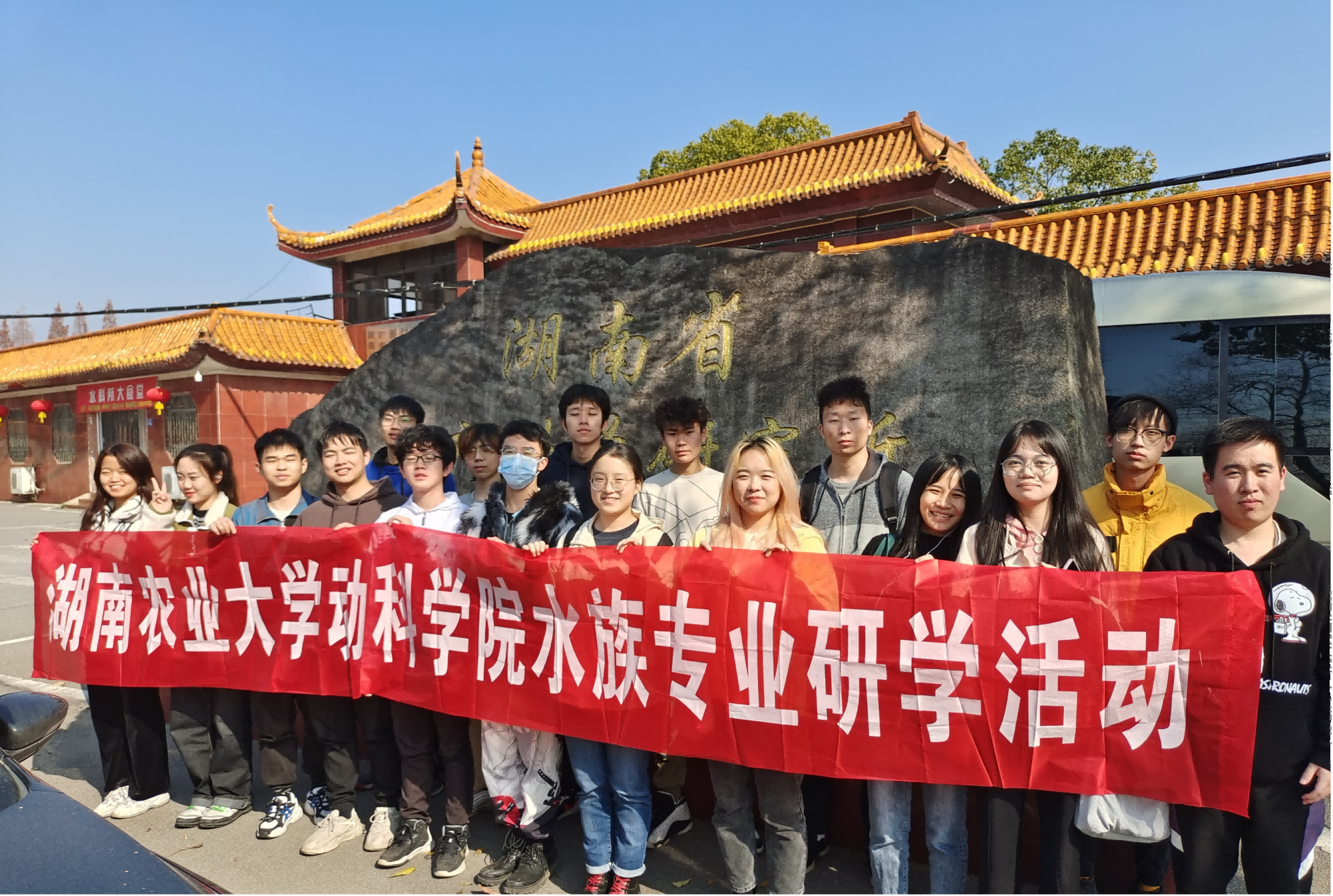 在结束柳吉的参观学习之后,同学们来到了本次研学活动的第二个党团活动地——湖南省水产研究所,习总书记在此处题字,激励水科所继续做出贡献,秉承为水产事业做贡献的一颗心,同学们在此处合影留念。紧接着,同学们参观了子非鱼锦鲤卖场,在这里同学们见识到了更多品种的锦鲤以及来自日本的具有巨大震撼力的锦鲤亲本,也见识到了锦鲤卖场设计,了解到了集里背后的非同寻常的身价。最后,同学们在水科所鲤隐台矗立着六根来自湖南省民国政府中山堂门楼的石柱,在这极具历史意义的石柱下,同学们合影留念。