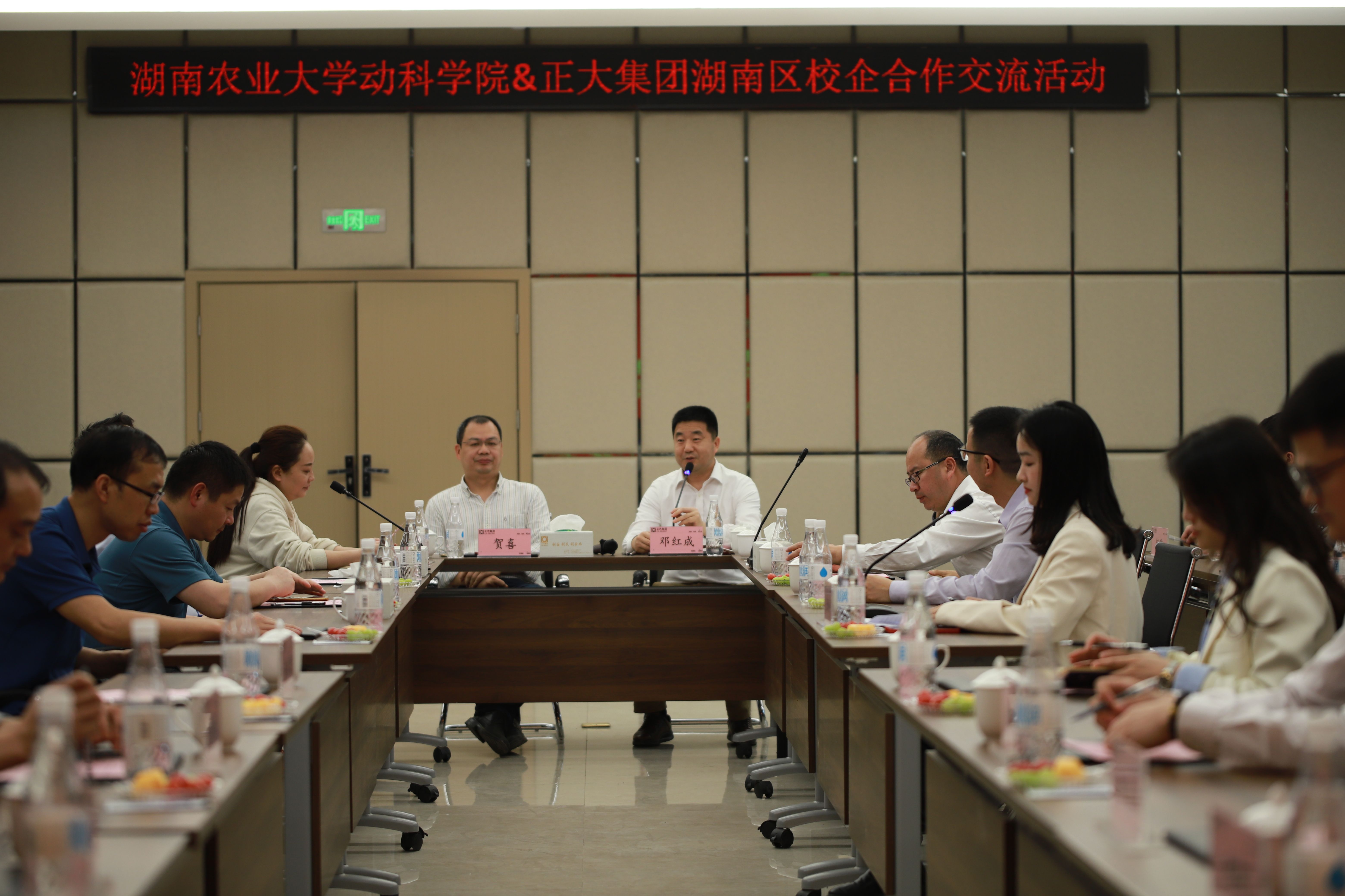在交流座谈会上,邓红成资深总裁对湖南农大动科学院师生的到来表示热烈欢迎,感谢永利集团3044官网欢迎您各级领导、老师历年来的大力支持,为正大培养输送了大量优秀的人才,并对正大集团在湖南的业务布局、发展规划以及行业现状进行了详细介绍。接下来,校企双方要拓展合作的深度与广度,进行深层次、多角度的紧密交流,推动双方事业快速发展。