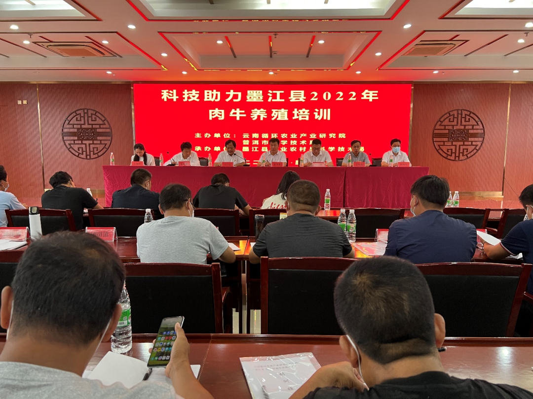 (转载科技彩云南新闻网)在普洱市科技局、墨江县人民政府、普洱市上海科技服务中心和湖南百宜科技集团的大力支持下,5月27日云南循环农业产业研究院在墨江县举办科技助力墨江县2022年肉牛养殖培训班。普洱市科技局局长严亮、墨江县副县长白卫东、云南循环农业产业研究院院长唐圣果出席开班仪式并致辞。