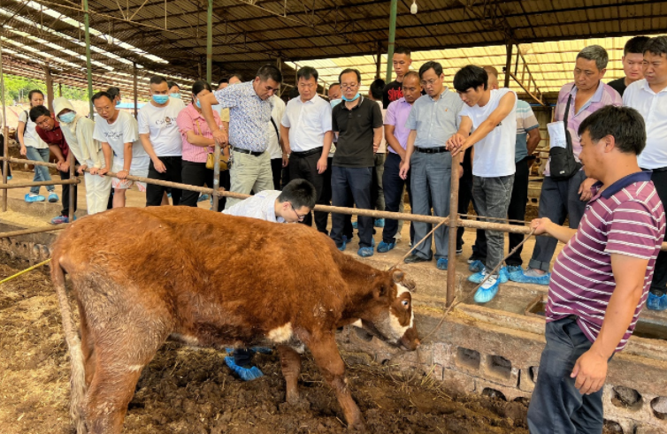 理论培训后,全体学员前往联珠镇象鼻村陈兴壁牛场进行实地培训。万发春教授现场指导学员制作贮存青贮饲料,针对学员在肉牛养殖过程中遇到的难题进行专业性解答,对陈兴壁牛场存在的问题提出改进意见。刘磊副教授针对牛场患病肉牛现场诊断,为牛场负责人提供解决方案。