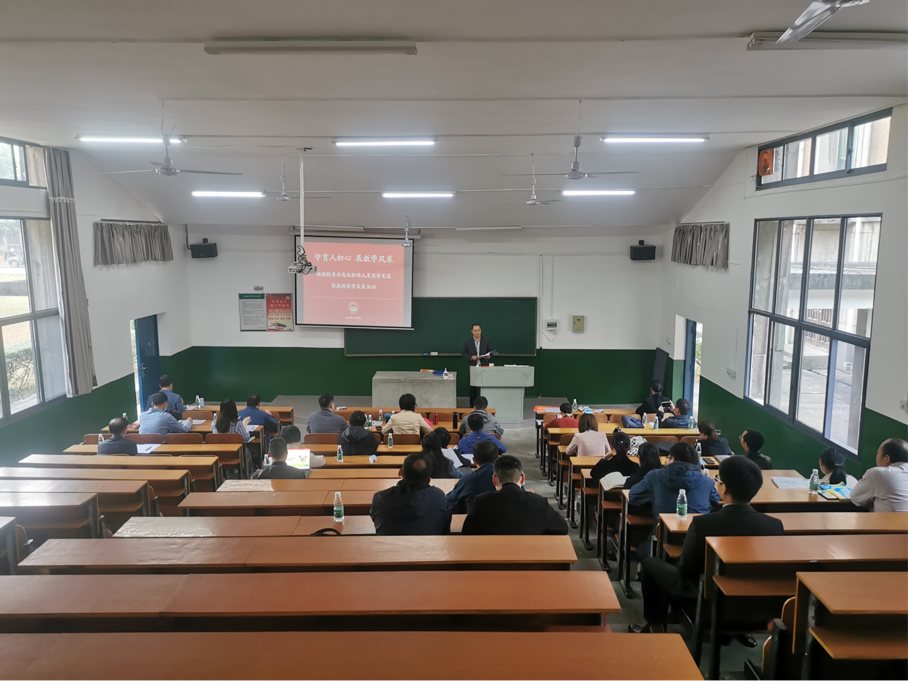 本次活动立足于人才培养实际,以现实课堂教学展示搭建教师间交流借鉴平台,以客观公正评价促进教师教学反思,以结果应用于职称晋升引导教师关注教学,精力投入人才培养。16名申报高级职称的老师进行了授课展示,院学术委员会成员、院督导、优秀教师代表和院领导参与评价,部分青年教师参与观摩,教务处教学质量管理科科长翟光辉到现场指导。