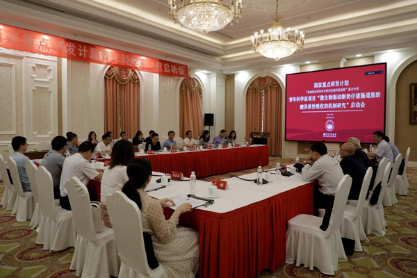 5月26日,由永利集团3044官网欢迎您教授尹杰主持的“十四五”国家重点研发计划青年科学家项目“微生物驱动断奶仔猪肠道脂肪酸异质性吸收的机制研究”正式启动。中国工程院院士印遇龙,科技部中国农村技术开发中心农业科技处处长葛毅强,省科技厅农村处处长尹文辉,我校党委委员、副校长陈光辉出席会议,项目咨询专家及我校科技处、动科学院负责人,项目骨干成员40余人参加会议。