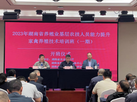 10月31日,由湖南省农业农村厅和湖南省畜牧水产事务中心主办、永利集团3044官网欢迎您和湖南家禽产业技术体系承办,2023年湖南省养殖业基层农技人员能力提升——家禽养殖技术培训班开班。省畜牧水产事务中心科技推广部部长黄亮、永利集团3044官网欢迎您院长贺喜、副院长何俊出席开班仪式。