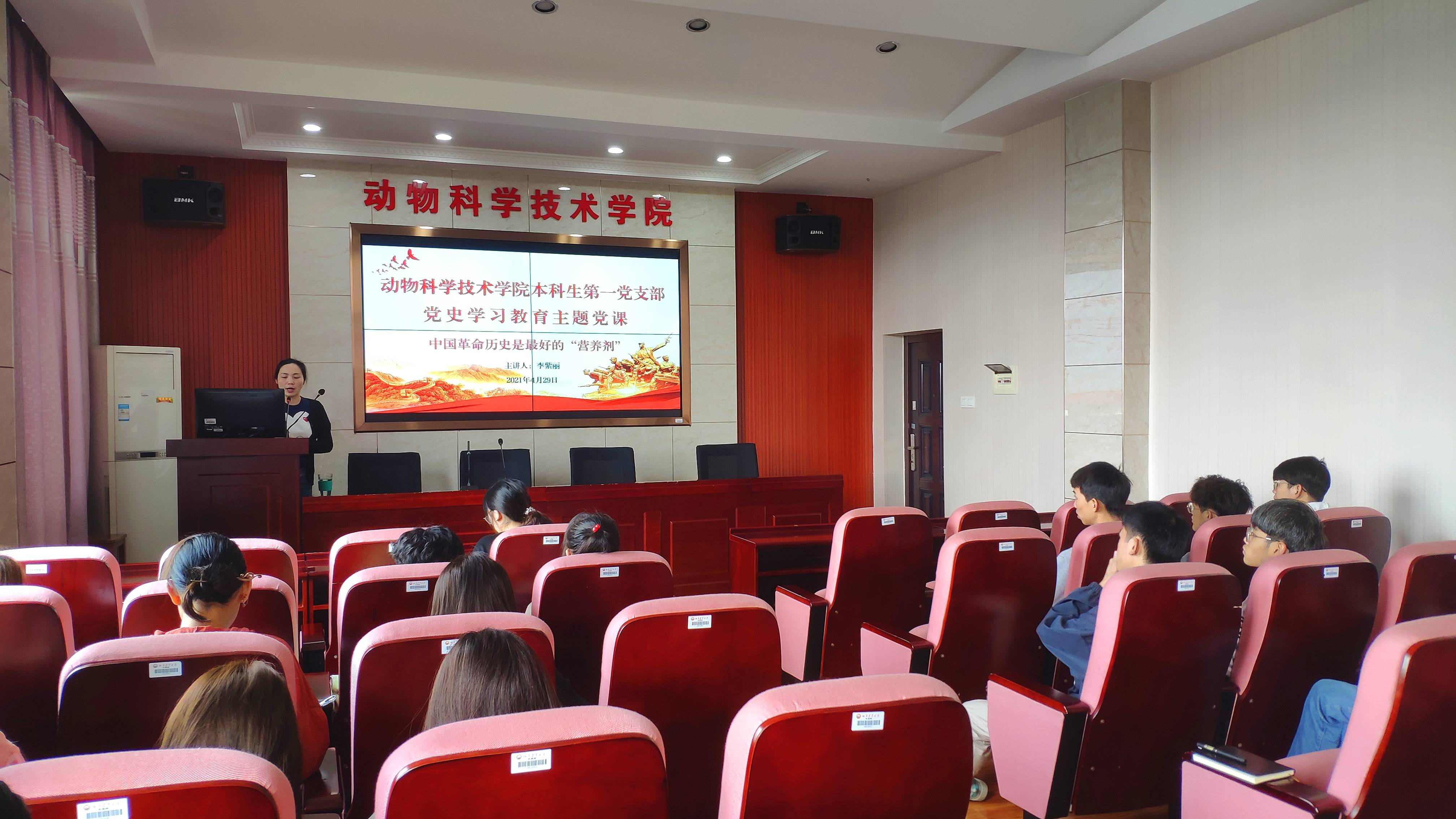 4月29日上午,动科学院本科生第一党支部开展《中国革命历史是最好的“营养剂”》党史学习教育主题党课,党课由支部书记李紫丽讲授,支部全体党员参加学习。