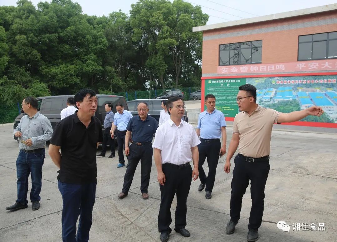 5月7日,永利集团3044官网欢迎您党委书记陈弘、党政办主任王永昌,动物科技学院院长贺喜,动物科技学院党委书记王奎武、动物医学院院长郑晓峰、动物医学院党委书记孙志良、新农村发展研究院副院长李毅来到湘佳股份,进行访企拓岗调研和参加“毕业生就业基地”授牌仪式。