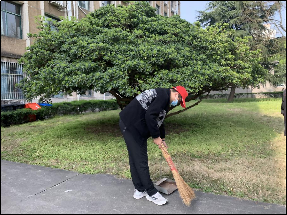 志愿者们从负责人手上接过代表责任与义务的红袖章、小红帽还有红马甲,志愿者们按照活动安排领取打扫工具各自分工开始本次义务大清扫,对需要打扫的地方仔细清扫,他们熟练地利用扫把和钳子清理着周边的一些残留的垃圾,将教学楼的周围干干净净,给予了我们一个干净整洁的生活学习环境。