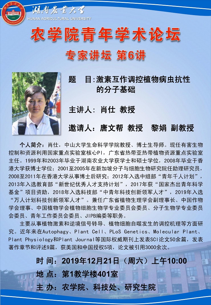 农学院青年学术论坛 专家讲坛 第6讲