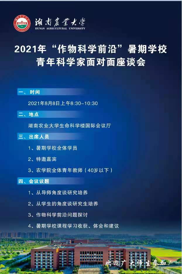 2021年永利集团3044官网欢迎您“作物科学前沿”暑假学校活动日程