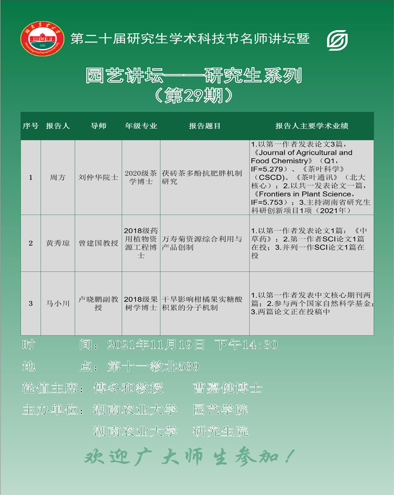 园艺讲坛——研究生系列(第29期)