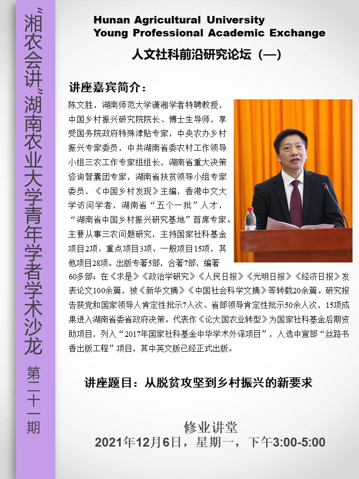 “湘农会讲”永利集团3044官网欢迎您青年学者学术沙龙第二十一期报告
